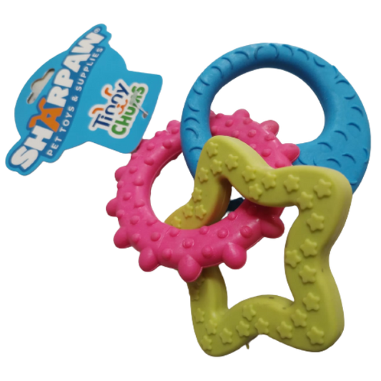 TINNY CHUMS SET DE ARO, ESTRELLA Y MEDIA LUNA DE CAUCHO SOLIDO VARIOS COLORES 17cm by SHARPAW