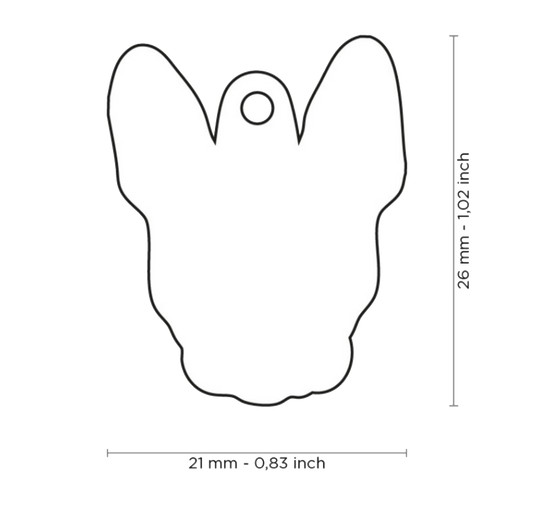 PLACA DE IDENTIFICACIÓN EN FORMA DE PERRO PAPILLON, GRABADO INCLUIDO