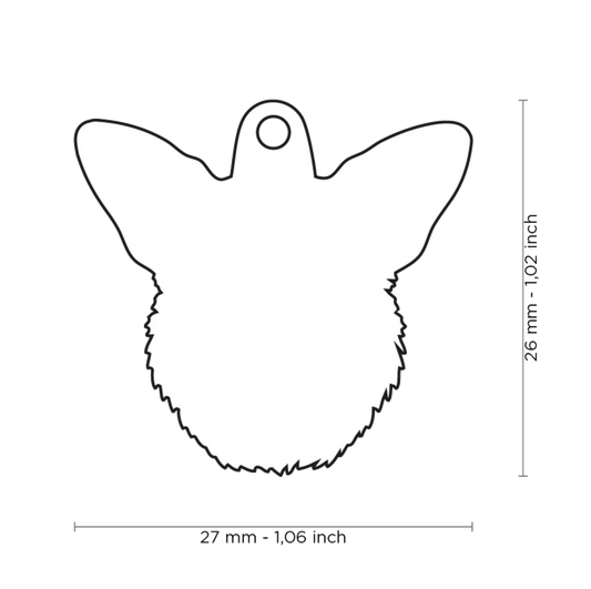 PLACA DE IDENTIFICACIÓN EN FORMA DE PERRO CORGI GALÉS, GRABADO INCLUIDO