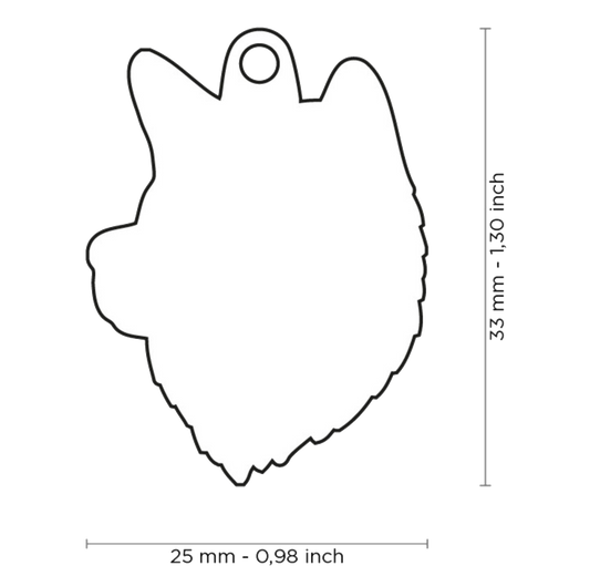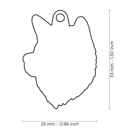 PLACA DE IDENTIFICACIÓN EN FORMA DE PERRO AKITA INU, GRABADO INCLUIDO