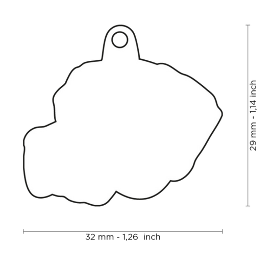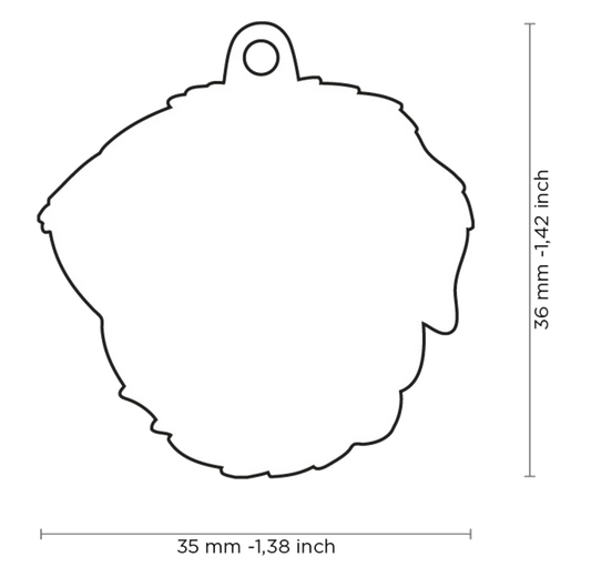 PLACA DE IDENTIFICACIÓN EN FORMA DE PERRO ESPINONE, GRABADO INCLUIDO