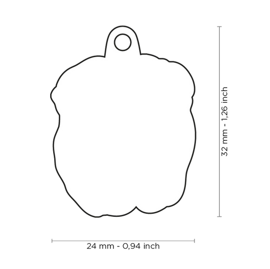 PLACA DE IDENTIFICACIÓN EN FORMA DE PERRO BULLMASTIFF, GRABADO INCLUIDO