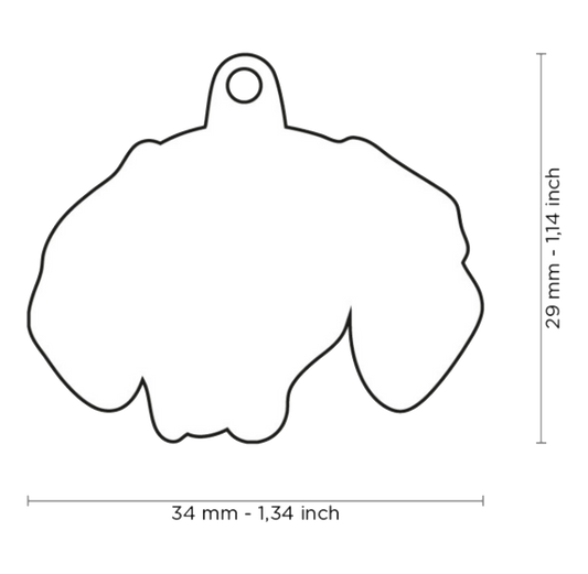 PLACA DE IDENTIFICACIÓN EN FORMA DE PERRO MASTÍN NAPOLITANO, GRABADO INCLUIDO