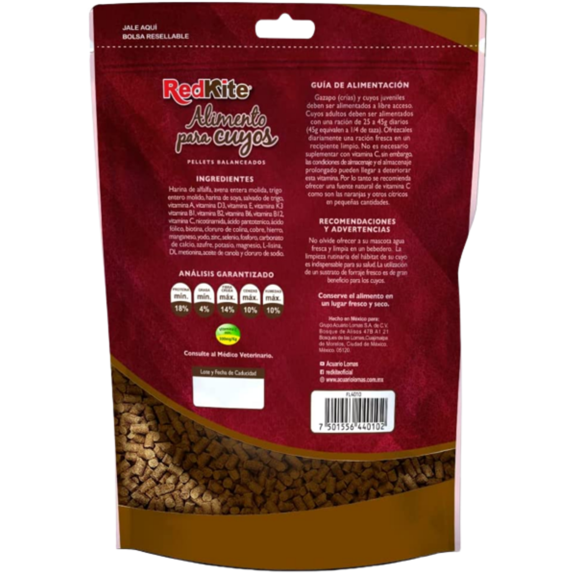 Alimento RedKite para Cuyos Adultos. Alimento de calidad premium 100% natural elaborado para que el cuyo lleve una dieta balanceada y saludable. Fortalece el sistema inmune y previene de enfermedades. Con bolsa resellable para mantener el alimento en buenas condiciones.