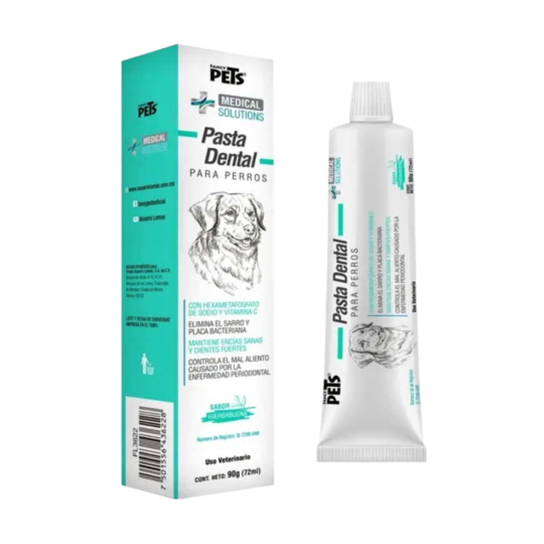 Esta pasta dental está diseñada especialmente para la salud bucal de tu perro. Elimina el mal aliento, combate el sarro y mantiene sus encías sanas.