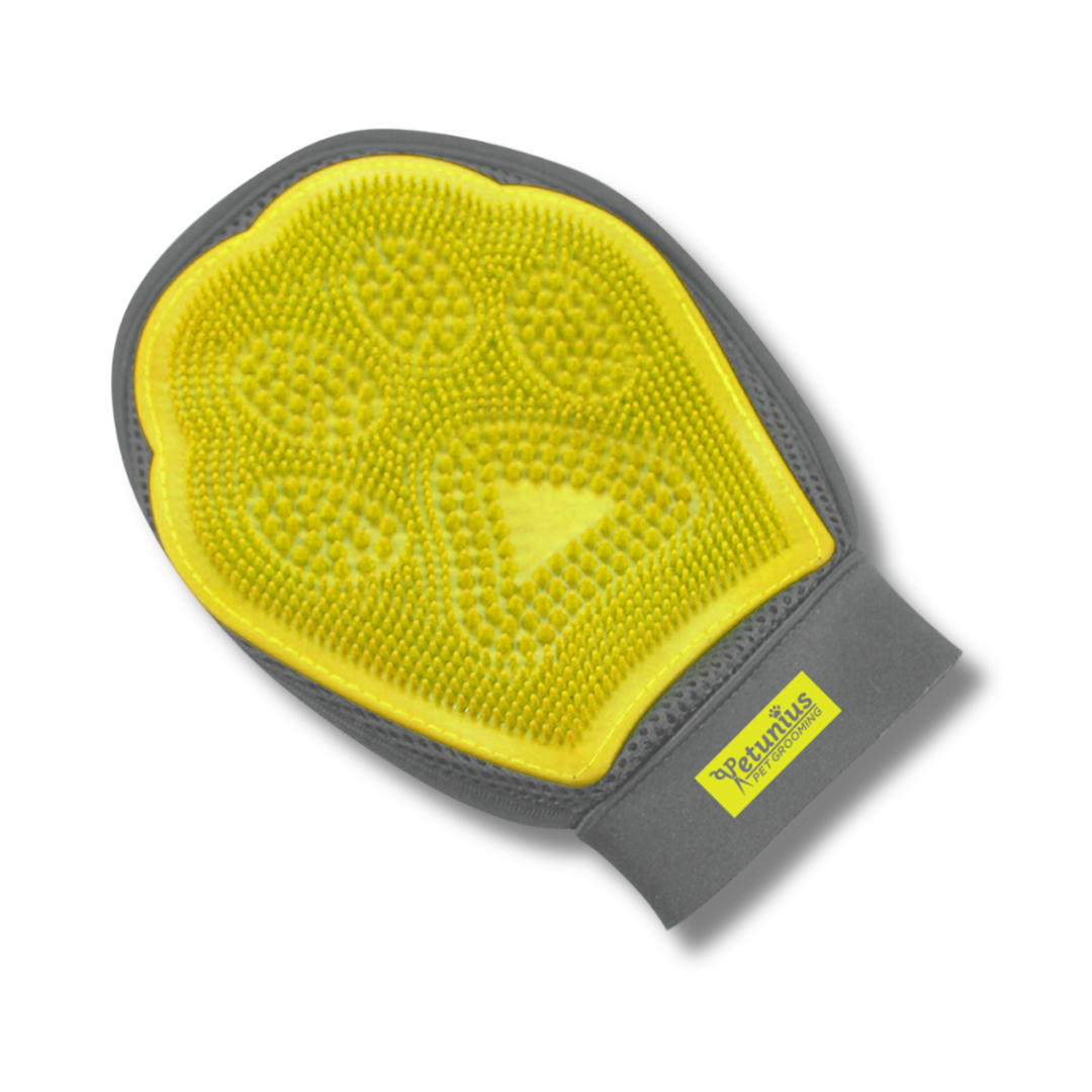 ¡Despídete del pelo suelto en casa! 🐾 Con el guante de goma PETUNIUS puedes cepillar y acariciar a tu mascota al mismo tiempo 🐕😺. Sus texturas especiales atrapan el pelo muerto de manera eficaz, mientras brindan un masaje relajante que tu peludo amará 💚. Fácil de usar, cómodo y práctico para el día a día.