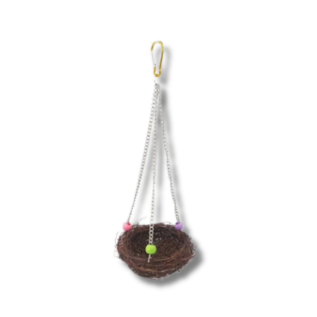 Mantén a tus aves entretenidas y estimuladas con este juguete tipo nido, ideal para periquitos, canarios y otras aves pequeñas. 🌿✨
