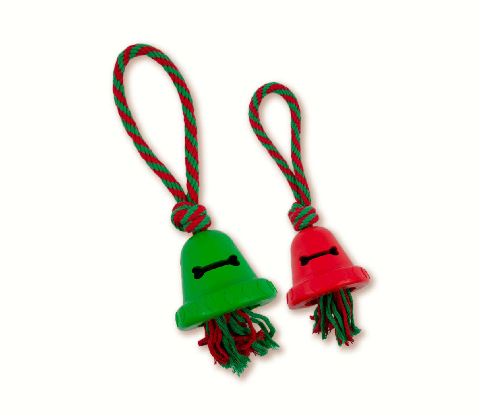 ¡Haz que esta Navidad sea divertida también para tu peludo! El juguete Campana Navideña de Caucho Rocky Chums está hecho de caucho sólido y resistente, ideal para perros que aman morder, jugar y sacudir. Con su diseño festivo y duradero, se convierte en el regalo perfecto para esta temporada.