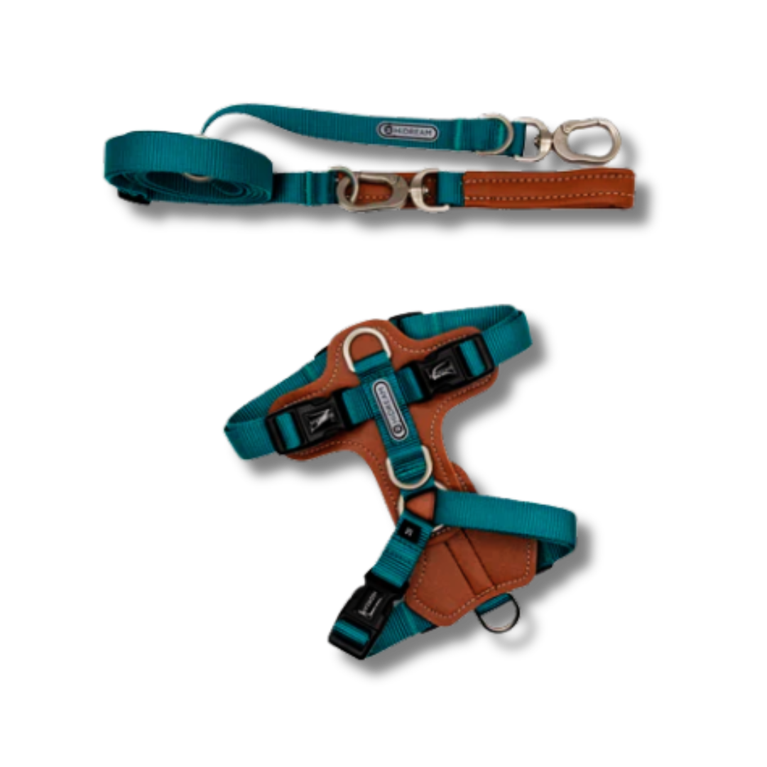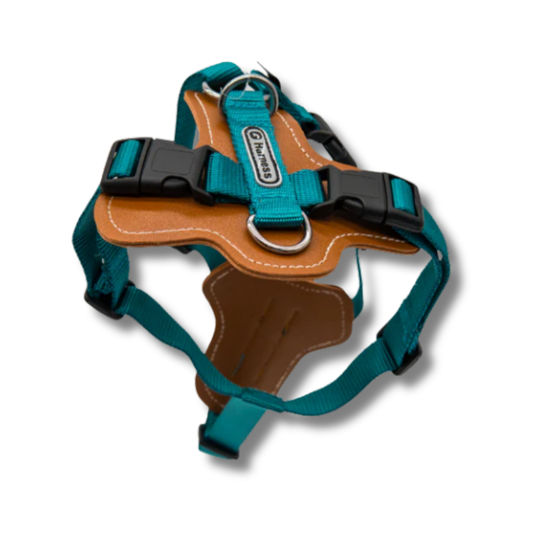 Elegante y resistente, esta pechera de piel ofrece comodidad y seguridad durante los paseos diarios. 🌿