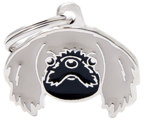 PLACA DE IDENTIFICACIÓN EN FORMA DE PERRO PEKINÉS, GRABADO INCLUIDO