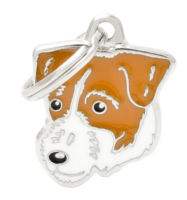 PLACA DE IDENTIFICACIÓN EN FORMA DE PERRO JACK RUSSELL BROKEN, GRABADO INCLUIDO