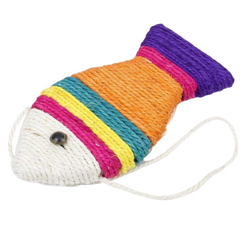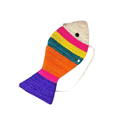 Divertido rascador de 40 cm en forma de pez de colorines con una tira para colgarlo en donde desees.