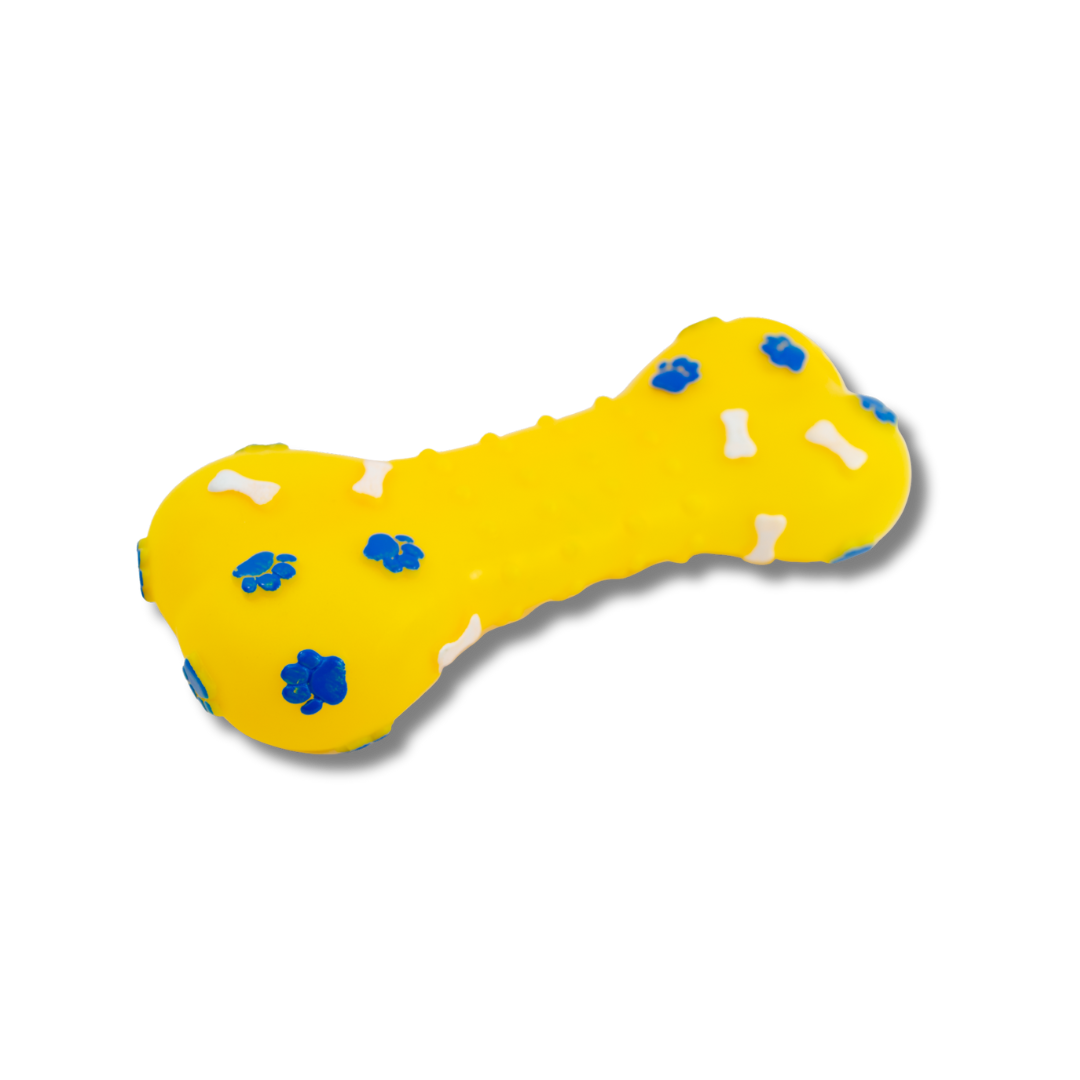 ¡Horas de diversión aseguradas para tu perro! 🐶 Este hueso de vinil con figuras en relieve incluye un sonido tipo squeaky 🔊 que atrae la atención y mantiene a tu peludo activo y entretenido.