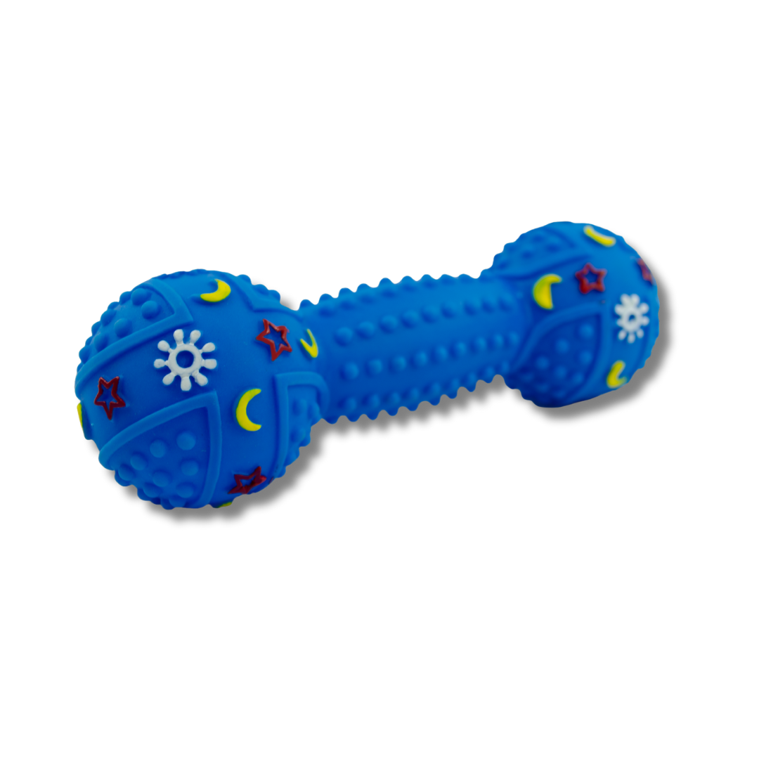 ¡Diversión y ejercicio garantizados para tu peludo! 🐶 Esta mancuerna de vinil emite un sonido tipo squeaky 🔊 que mantiene a tu perro activo y entretenido durante horas.